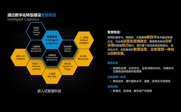 建設智慧物流。利用創(chuàng)新技術建設智慧企業(yè),提高物流系統(tǒng)分析決策和智能執(zhí)行能力,提升行業(yè)智能化、自動化、柔性水平,實現(xiàn)業(yè)務管理一體化及創(chuàng)新發(fā)展。