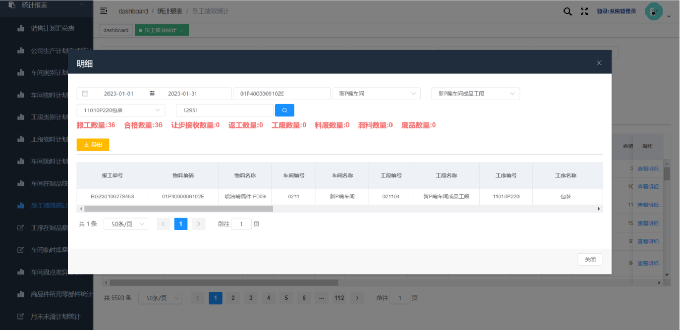 多維度報表統計、包含計劃完成情況、生產執行情況、員工績效、質量統計、物料收發臺賬、設備分析報表等。