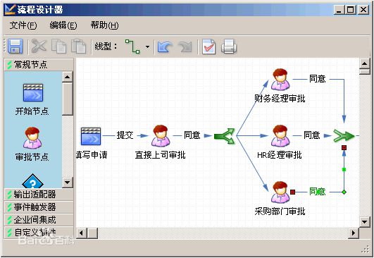 一體化完整的BPM解決方案,徹底的免編程設計,從拖拉式流程設計器、表單設計器、報表設計器均符合免編程設計原則,并且,所有產品包括組織結構管理,電子表單、流程設計、報表設計全部符合微軟產品用戶已有的使用習慣。