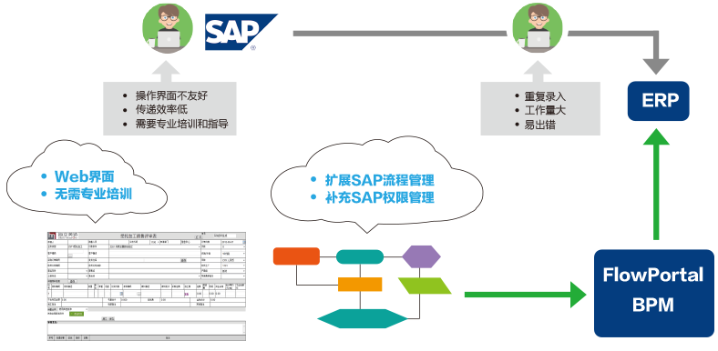 中科華智結合自身多年實施SAP ERP的經驗,在為客戶做好ERP實施服務的同時,為客戶提供業務流程的咨詢、業務流程的梳理和業務流程的搭建,通過和FlowPortal合作,為客戶提供一站式整體信息化解決方案。